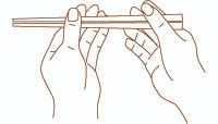 要領就是把位於下方的一隻筷子固定起來,擺動上方的一隻筷子,夾住食物即可。